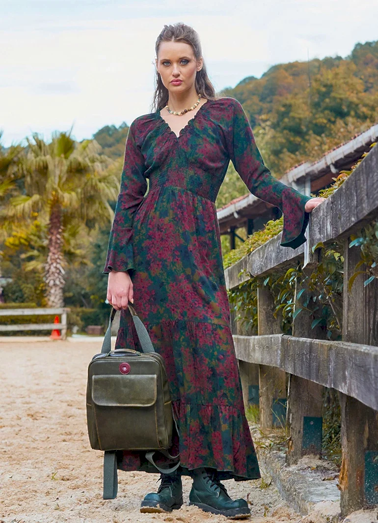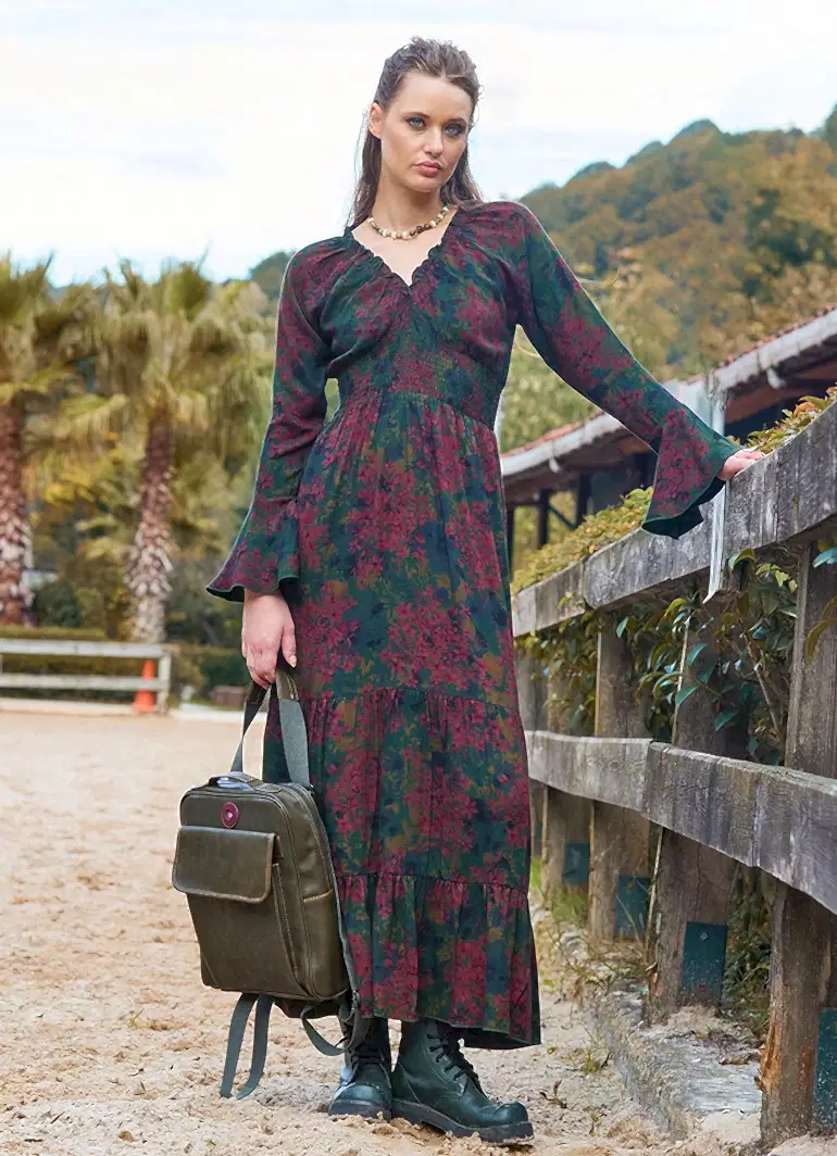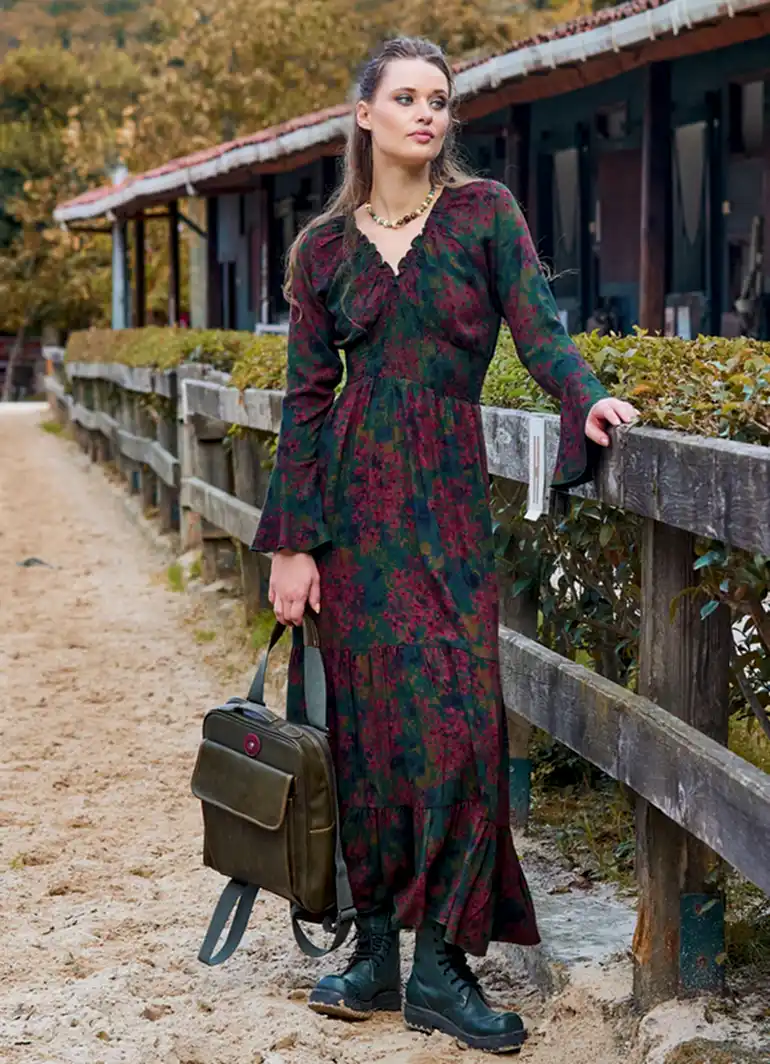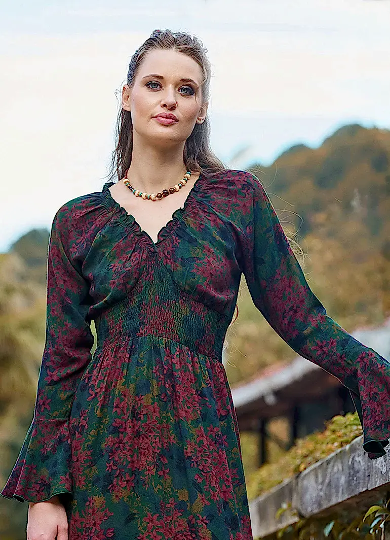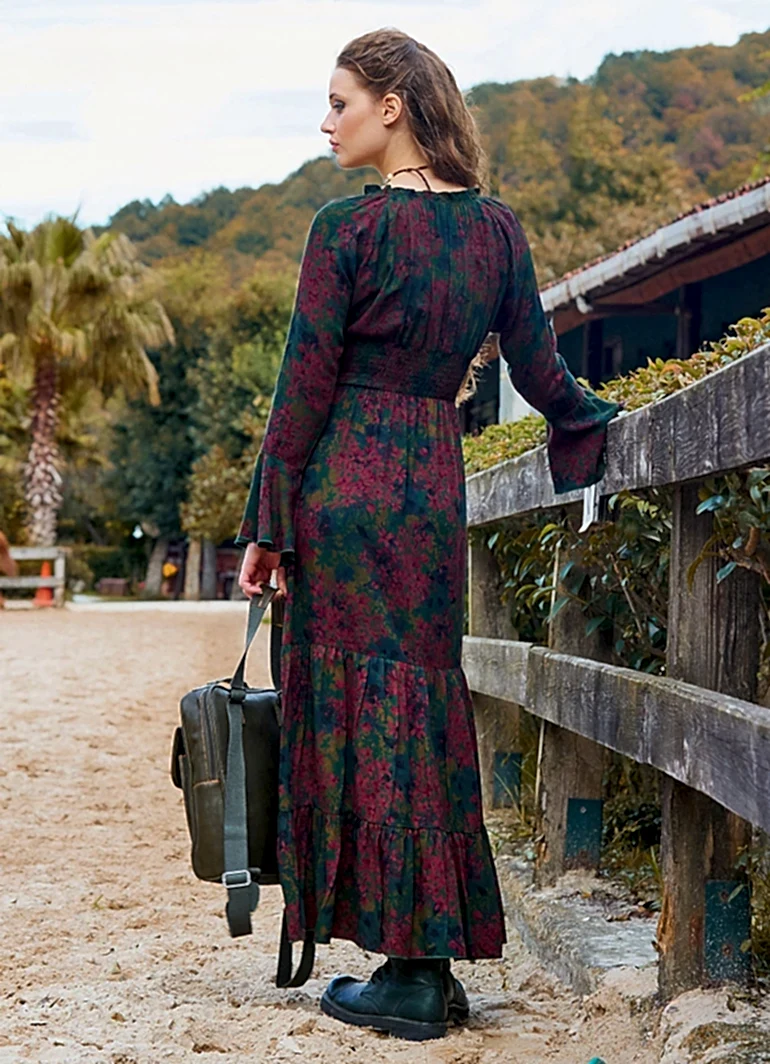 Yakası lastikli ve ispanyol kollu tasarımıyla öne çıkan bu yeşil kışlık elbise, hem şıklığı hem de rahatlığı bir arada sunar. V yaka ve gipe detaylarıyla modern bir dokunuş sağlar.